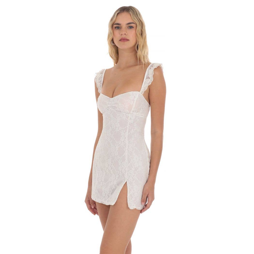 - Mini Length - Left side slit - Zipper and back tie closure - Adjustable straps - Fully lined - Sheer - Made in lace fabric - Hand wash cold